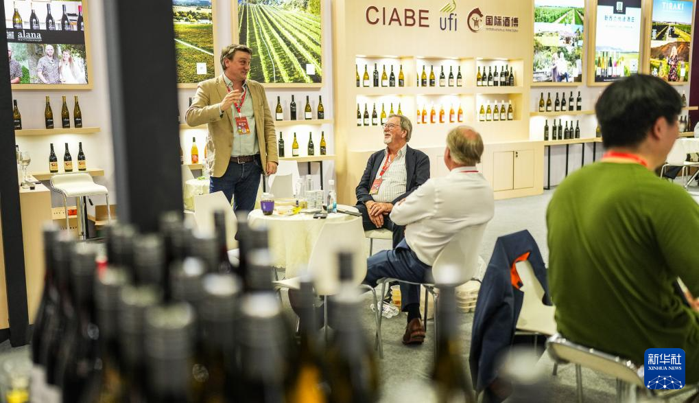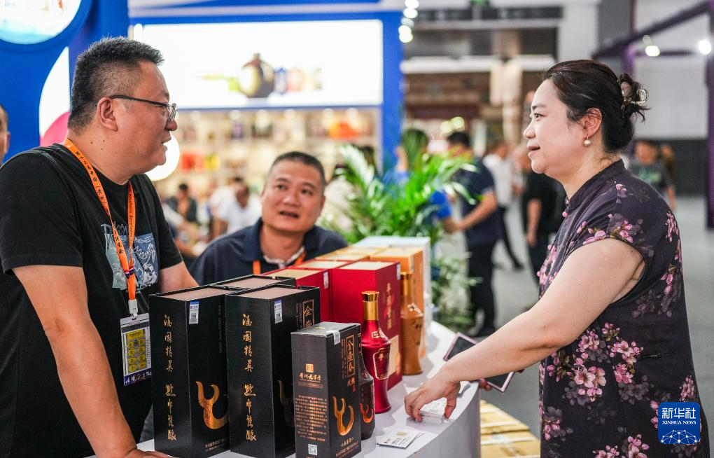 9月9日,参展商在酒博会现场洽谈业务。新华社记者 陶亮 摄