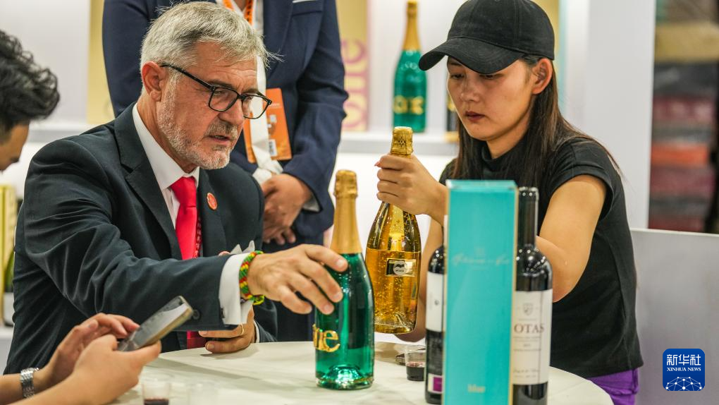 9月9日,参展商在酒博会现场品酒。新华社记者 陶亮 摄