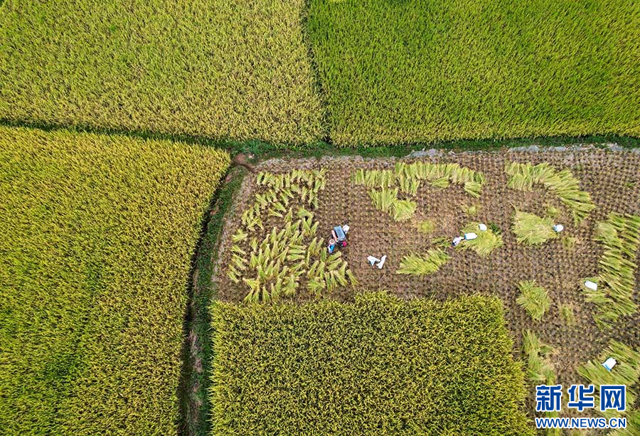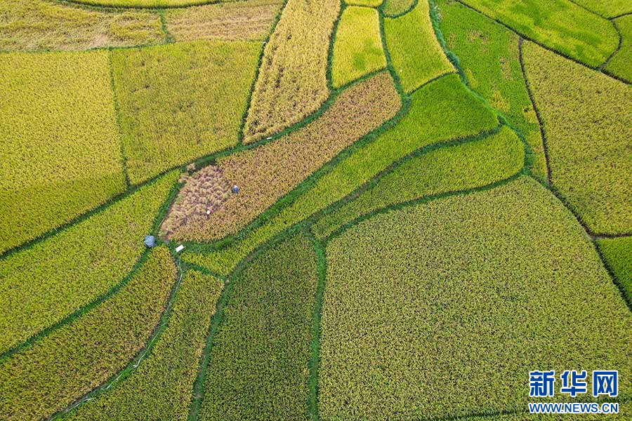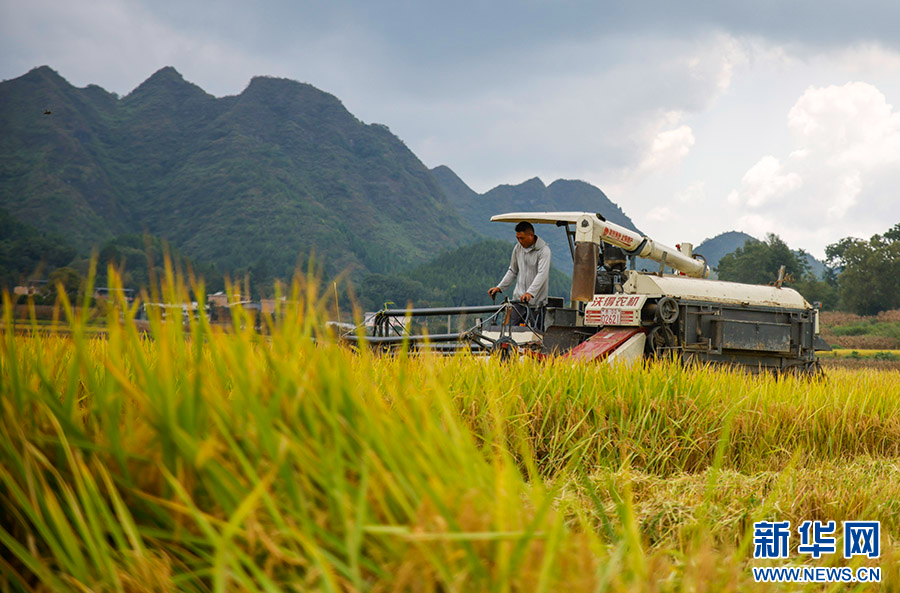 9月10日,贵州省黔东南苗族侗族自治州施秉县城关镇上翁哨村村民在收割水稻。新华网发(磨桂宾 摄)