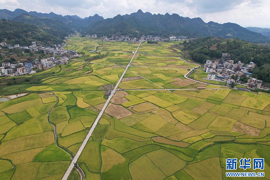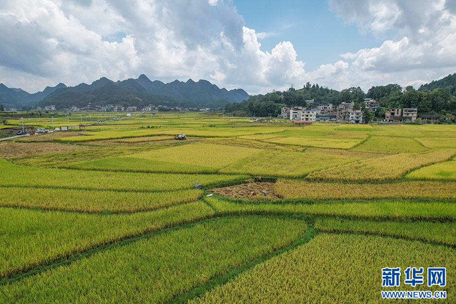 金秋时节,贵州省黔东南苗族侗族自治州施秉县城关镇上翁哨村种植的千亩优质水稻进入收获季,村民抢抓晴好天气收割、晾晒稻谷,确保颗粒归仓。