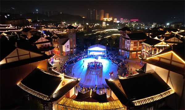 大方县奢香古镇篝火夜景航拍。何志刚 摄