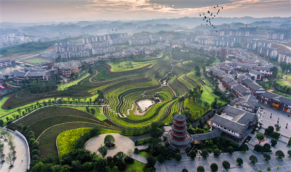 古镇一特是梯田。在古镇中心,建有全国唯一的城中花海梯田,占地11万平方米,层层叠叠,宛如一枚巨大的“指纹”镶嵌在大地上,成为全国游客慕名而来的打卡胜地。在这片花海中,四季不同景,一日不同色。春季,桃花、樱花争相绽放,粉色花瓣与翠绿梯田相映成趣;夏季,金黄的向日葵向阳盛开,光彩夺目;秋季,菊花、银杏簇拥其中,白、黄、红交织,绚烂多姿;冬季,白雪覆盖的梯田沉淀着另一种静谧的美。白天,绿树碧草,惠风和畅;夜晚,流光溢彩,如梦似幻。徜徉其中,流连忘返,心醉神迷,恍若天上人间。