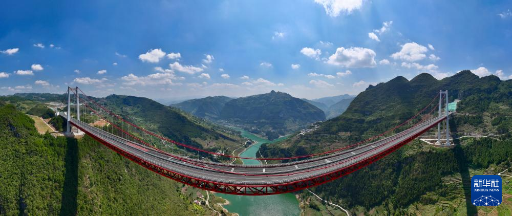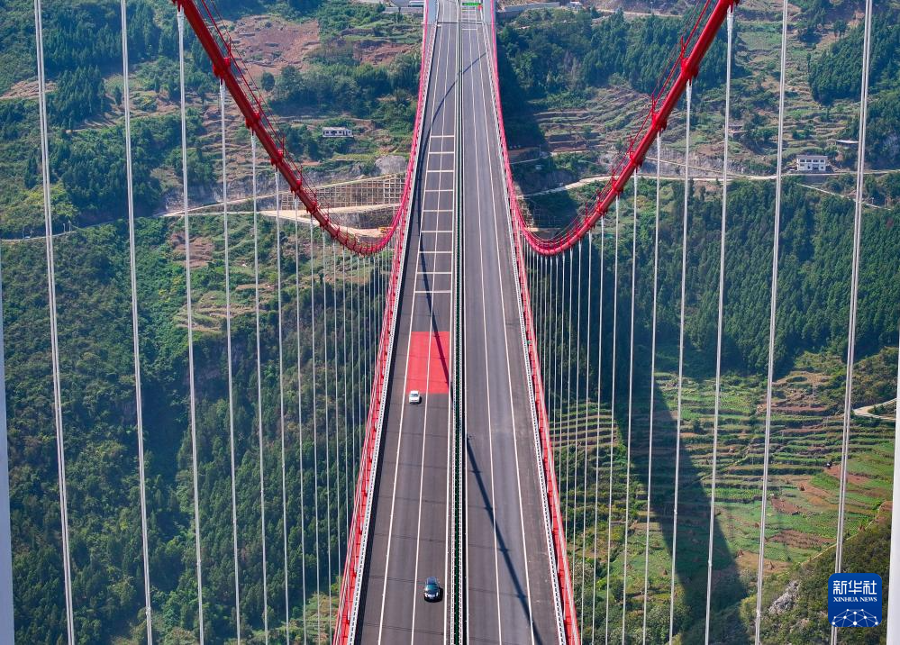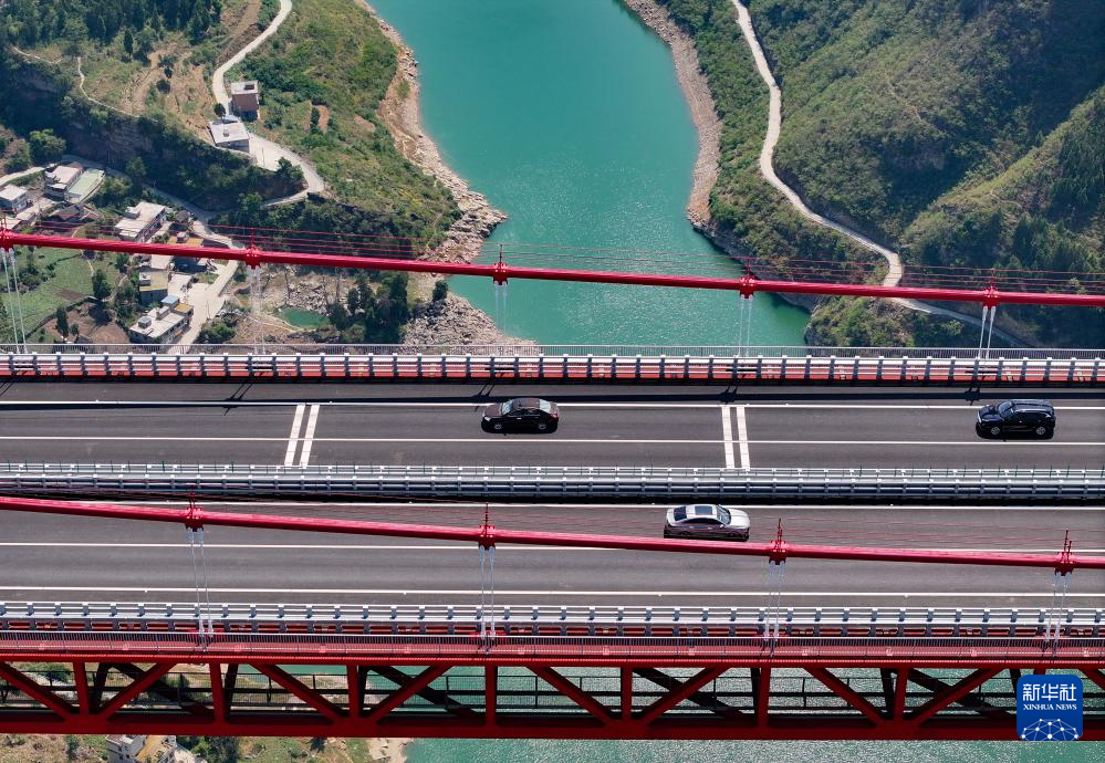 9月13日,车辆行驶在金仁桐高速桐梓河特大桥上(无人机照片)。新华社记者 刘续 摄
