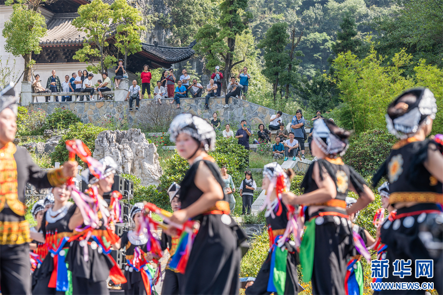 9月13日,在贵州省毕节市织金县平远古镇活动现场,文艺演出吸引众多市民到场观看。新华网发(罗大富 摄)