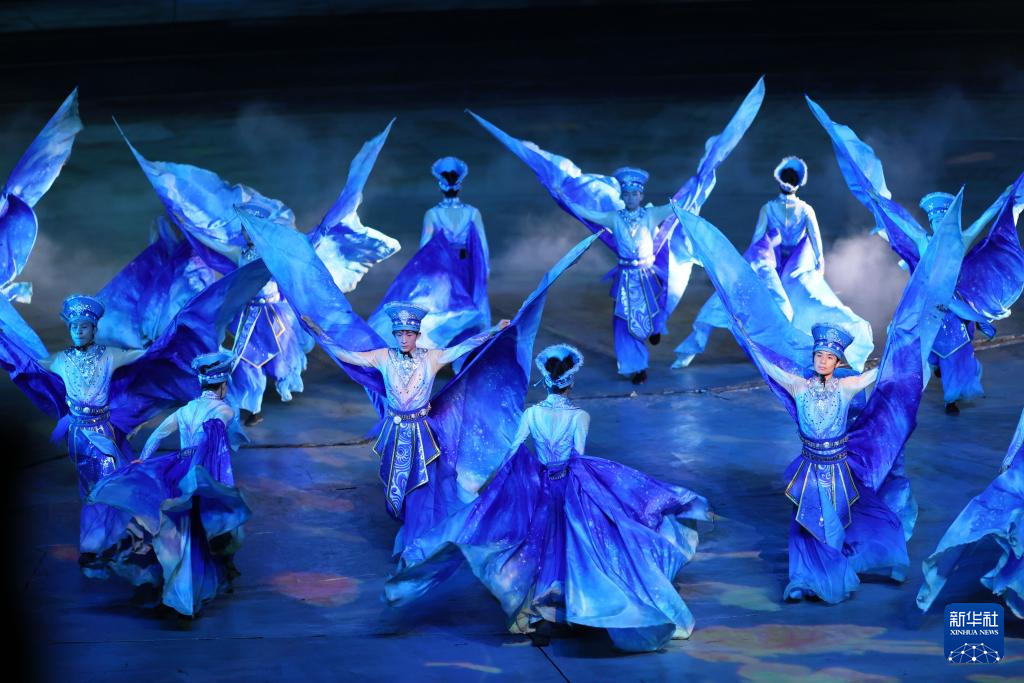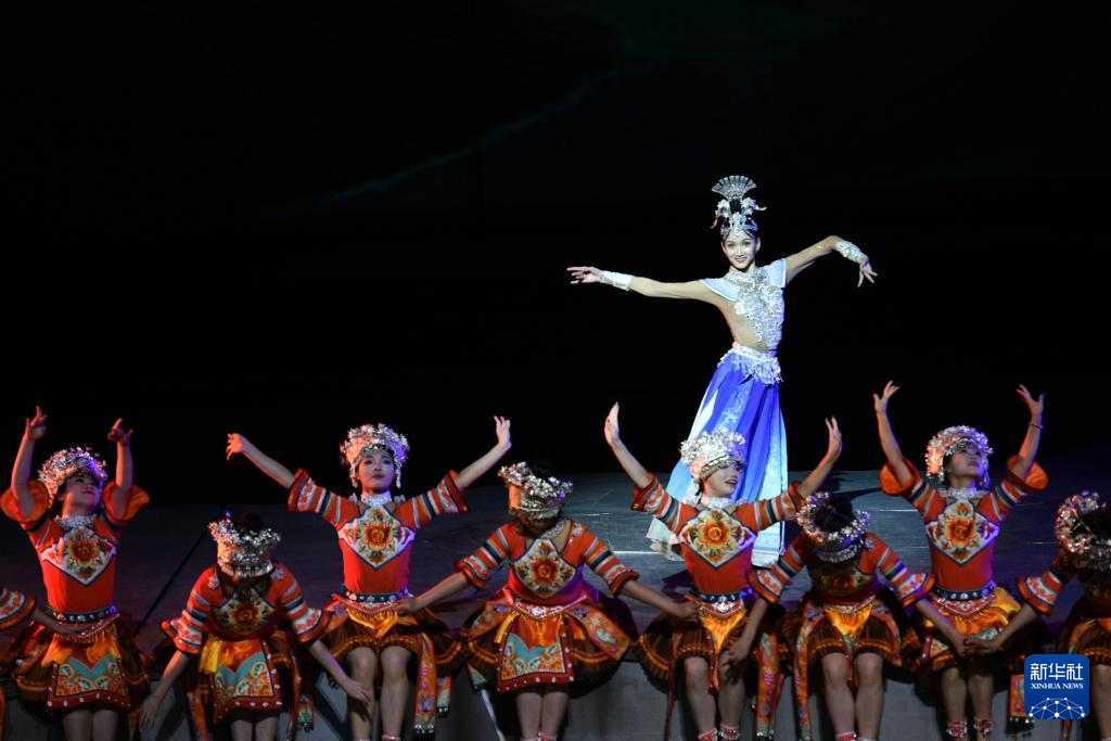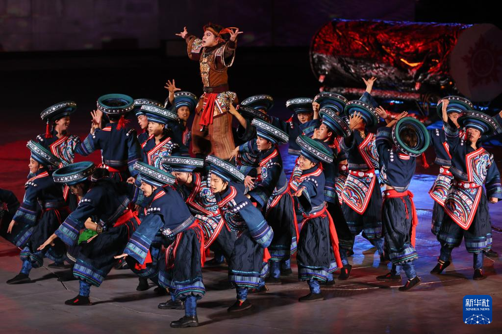 9月20日晚,演员在贵州省雷山县大塘镇表演苗族歌舞诗剧《仰欧桑》。新华社记者 杨文斌 摄
