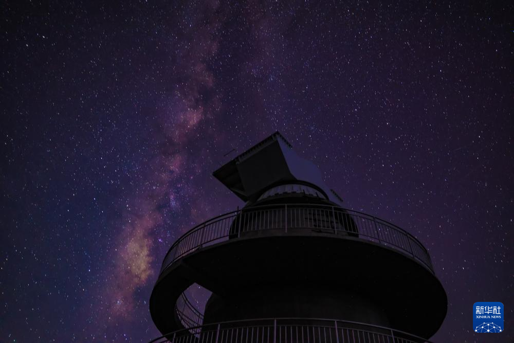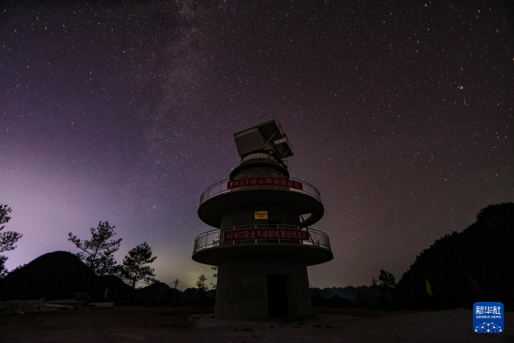 已经完成首吊的核心阵试验样机矗立在星空下(9月25日摄)。新华社记者 刘续 摄