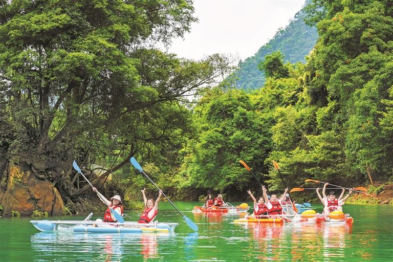 “7月22日起,小七孔景区的入园时间从8点30分调整到7点。”荔波县文化广电和旅游局副局长覃晓康介绍,通过一系列举措,各景点秩序良好。作为贵州奋力打造世界级旅游目的地的重要景区,荔波聚焦小七孔景区核心资源,于今年旺季前完成了“踏瀑戏水”、鸳鸯湖游船等提质升级,打造“小七孔世遗探险部落”和“卧龙谷漂游至鸳鸯湖”两个拳头产品,推出上己定湖山水间旅拍服务项目,常态化开展“民族文化进景区”系列活动。在小七孔桥每日推出布依族原生态传统婚俗文化;在翠谷瀑布推出猴鼓舞、矮人舞等充满民族特色的精彩表演;在大七孔外码头,水上摩托和飞人项目强势回归。持续丰富业态产品供给,成为荔波做强吸客留客的关键。数据显示,今年7至8月,荔波县接待游客773.53万人次,同比增长3.65%,其中省外游客占比达96%。