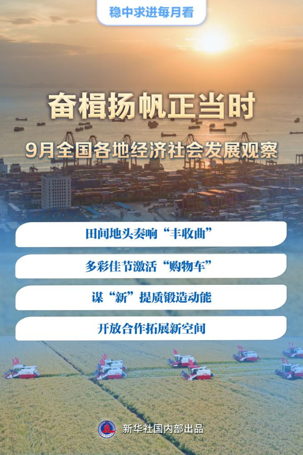 丰收的田间地头、热闹的假日市场、不断上新的产品技术、共谋合作的广阔平台……9月以来,全国各地干字当头,主动作为抓重点,扎实推进高质量发展取得新成效。