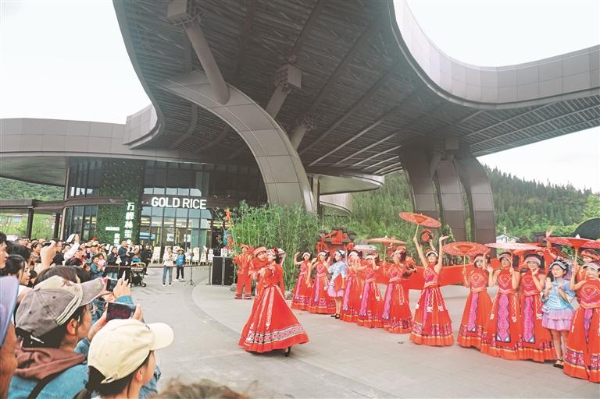 10月1日,万峰林景区游客中心户外演绎剧场举办“寻梦万峰林”演出,游客纷纷驻足观看。记者 黄飞鸿 摄