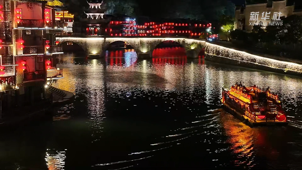 白天,阳光洒落在古建筑上,舞阳河如一块碧绿的镜子,倒映着两岸的房屋。游船在江面前行,穿过古老的石桥桥洞,仿佛穿行在时光隧道。