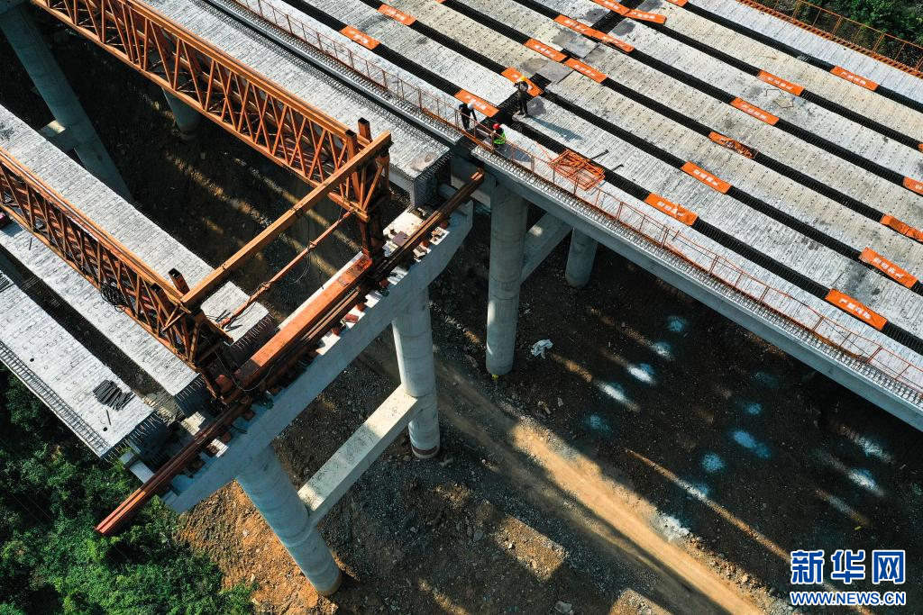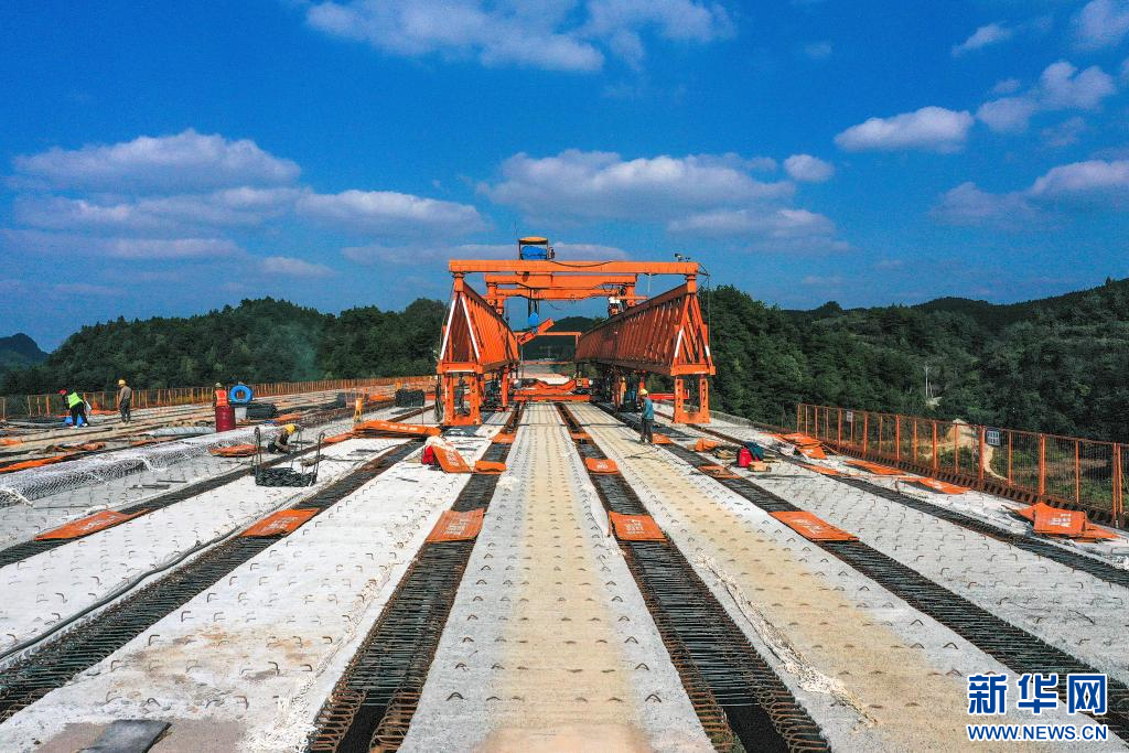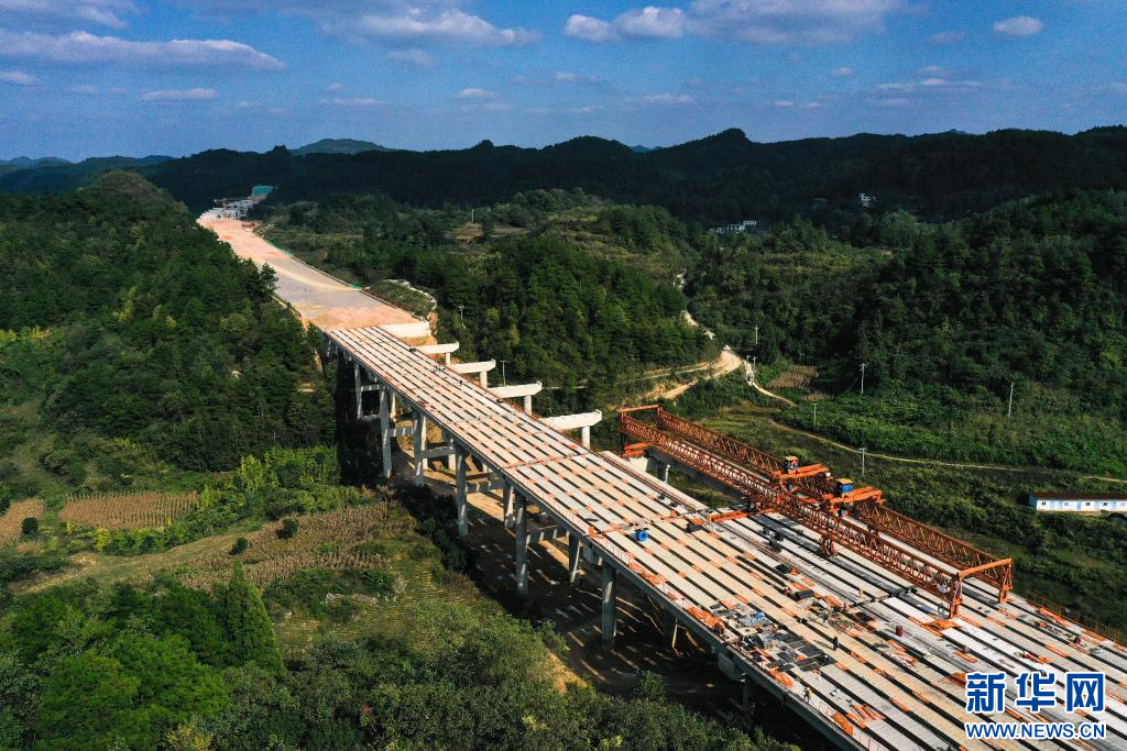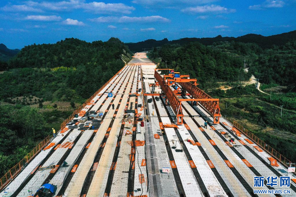 目前,贵州乌当至长顺高速公路建设现场的工人们正加紧架设桥梁、修筑边沟、铺设路面,全线建设正有序推进。