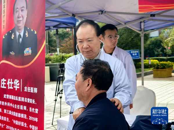 武警新疆总队医院名誉院长、肝胆外科中心主任医师庄仕华10月17日在义诊现场。(任从宁 摄)