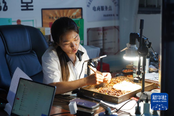 电商主播在直播销售皂角米。新华社发(王俊豪 摄)