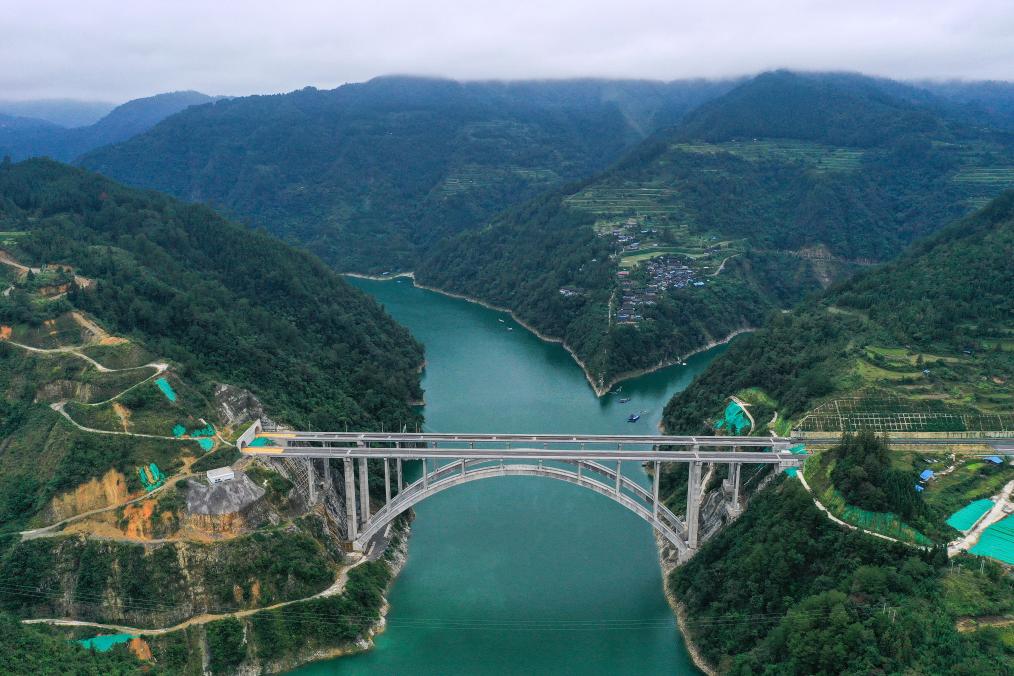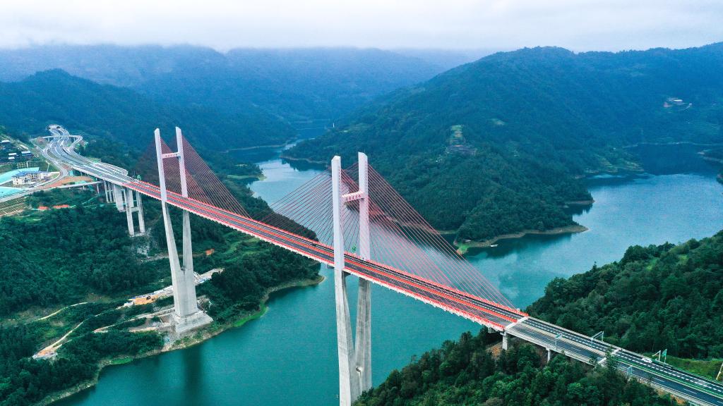 这是10月20日拍摄的贵州剑黎高速清水江特大桥(无人机全景照片)。新华社记者 杨文斌 摄