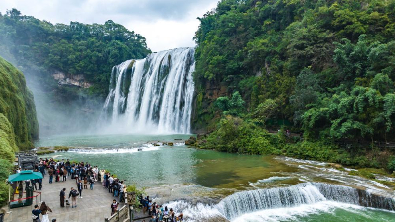 10月23日,遵义市红花岗区第二十小学的学生们陆续进入双河洞景区。新华社记者 陶亮 摄