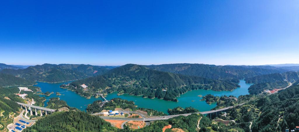 10月25日,车辆在贵州剑黎高速固本互通附近行驶(无人机全景照片)。