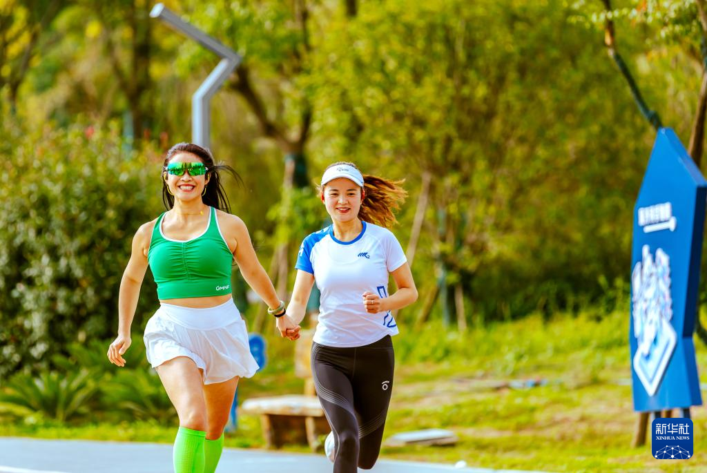 10月26日,市民在贵州省黔西市杜鹃湖湿地公园健身晨跑。新华社发(范晖摄)