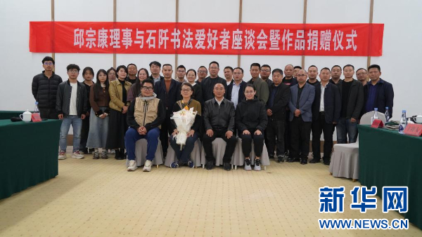 邱宗康与石阡书法爱好者座谈会现场。新华网发(石阡县融媒体中心 供图)
