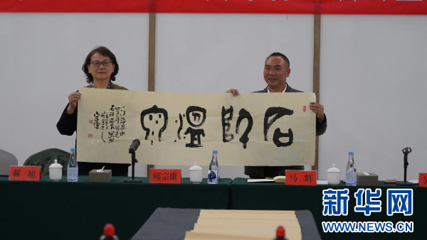 新华网贵阳11月3日电(记者刘智强)近日,中国书法家协会第六届理事、陕西书法家协会副会长兼秘书长邱宗康来到贵州省石阡县调研交流,并根据石阡的温泉、苔茶、红色文化三个特色,书写三幅作品捐赠给石阡县。
