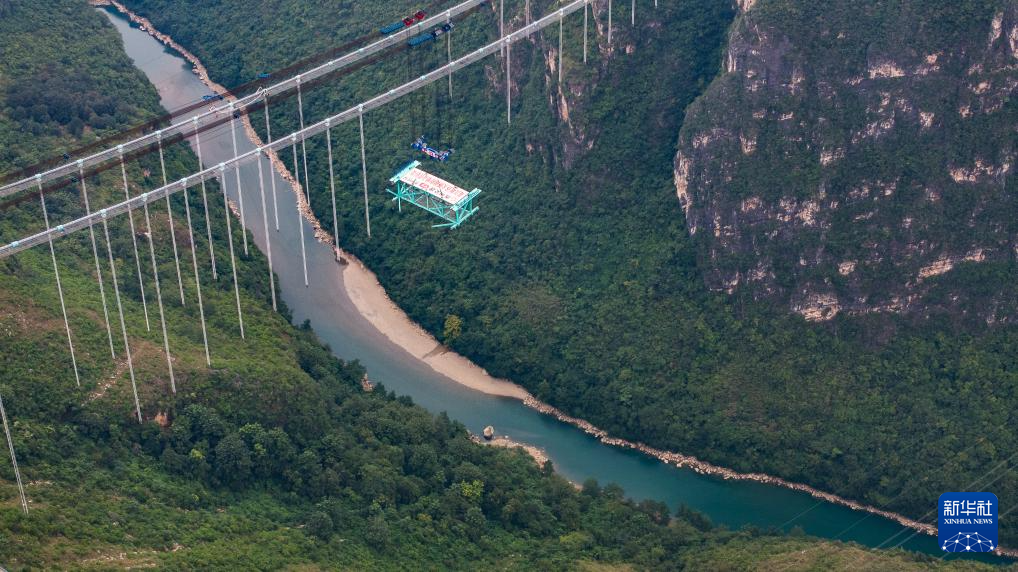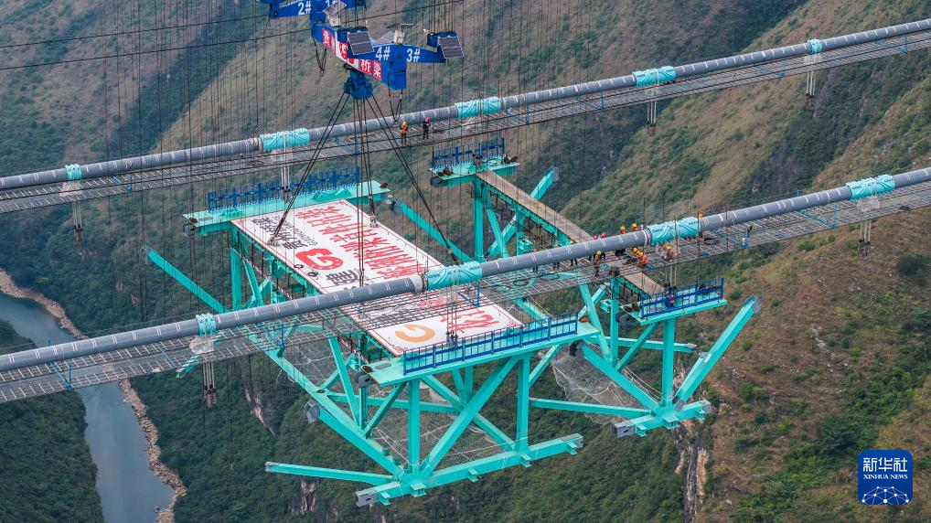 新华社贵阳11月4日电(记者向定杰)4日下午,在建世界最高桥——贵州花江峡谷大桥建设取得重要进展:随着缆索吊机将重约215吨的首件钢桁梁精准吊装至指定位置,大桥施工进入新阶段,为明年通车运营奠定了基础。
