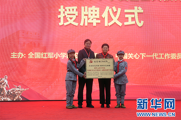新华网贵阳11月9日电 11月8日,在贵州省毕节市七星关区红军小学授旗授牌仪式上,第十届全国人大常委会副委员长、中国关心下一代工作委员会主任、全国红军小学建设工程理事会荣誉理事长顾秀莲为相关学校进行授牌授旗,并为石阡县困牛山战斗遗址授予了“全国红军小学爱国主义教育研学基地”的荣誉牌匾。石阡县委副书记张彬代表石阡县接牌。