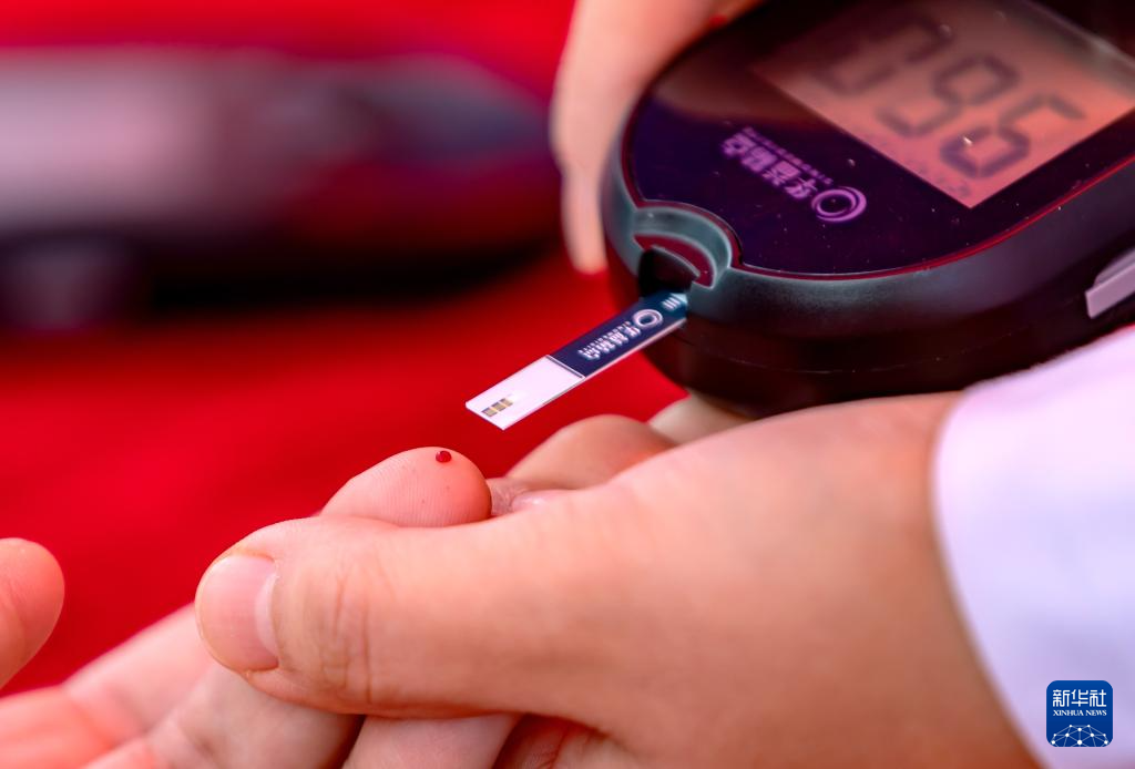 11月14日,医生在贵州省黔西市人民医院东桥路院区为群众免费检测血糖。