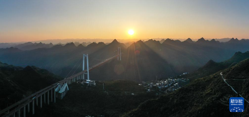 11月14日拍摄的晨曦中的贵州坝陵河大桥(无人机照片)。新华社记者 杨文斌 摄
