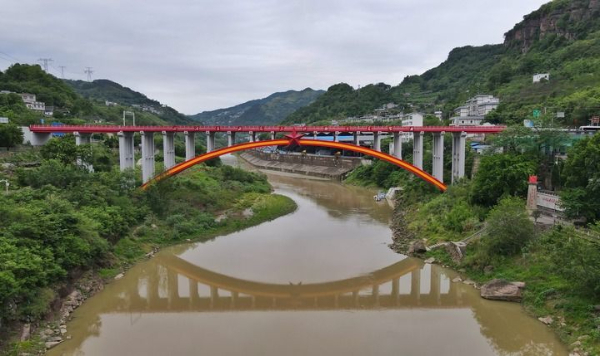 连接贵州省习水县和四川省古蔺县的太平渡大桥(2023年6月1日摄)。大桥旁的太平渡渡口为四渡赤水战役时二渡、四渡的主要渡口。新华社记者 刘坤 摄