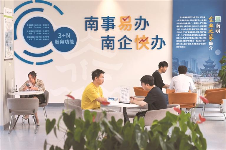 企业人员在贵阳市南明区政务服务大厅“企业之家”洽谈交流。赵松 摄(贵州图片库发)