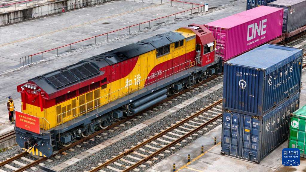 11月19日,一列搭载动力锂电池的列车停靠在贵阳国际陆港都拉营站。