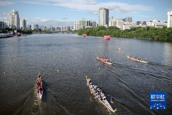 新华社三亚11月23日电(记者罗羽、罗江、王存福)头顶是蓝天白云,眼前是粼粼碧波,当一条又一条龙舟接连从水面划过,准备进行比赛,现场观众发出阵阵“加油”声。