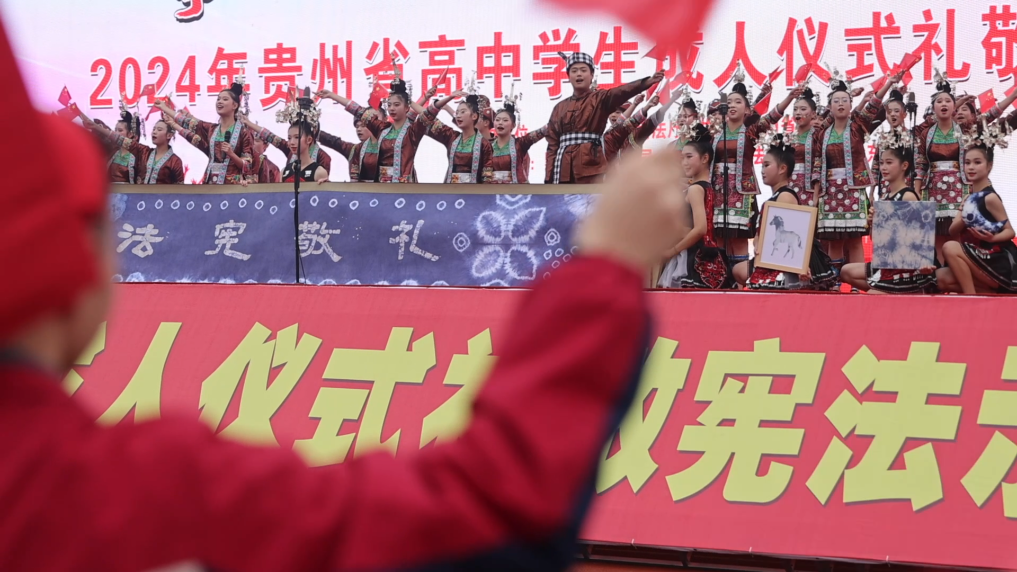 12月4日,第十一个国家宪法日当天,2024年贵州省高中学生成人仪式礼敬宪法示范活动在黔东南苗族侗族自治州凯里市第一中学举行。