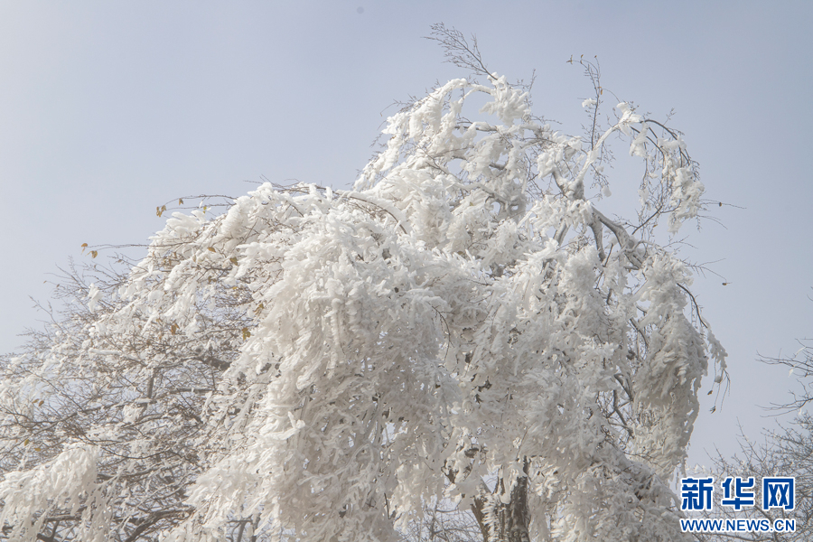 12月9日,在贵州省毕节市威宁彝族回族苗族自治县雪山镇灼甫草场,银装素裹的树枝宛如精美的艺术品。新华网发(管庆巍 摄)