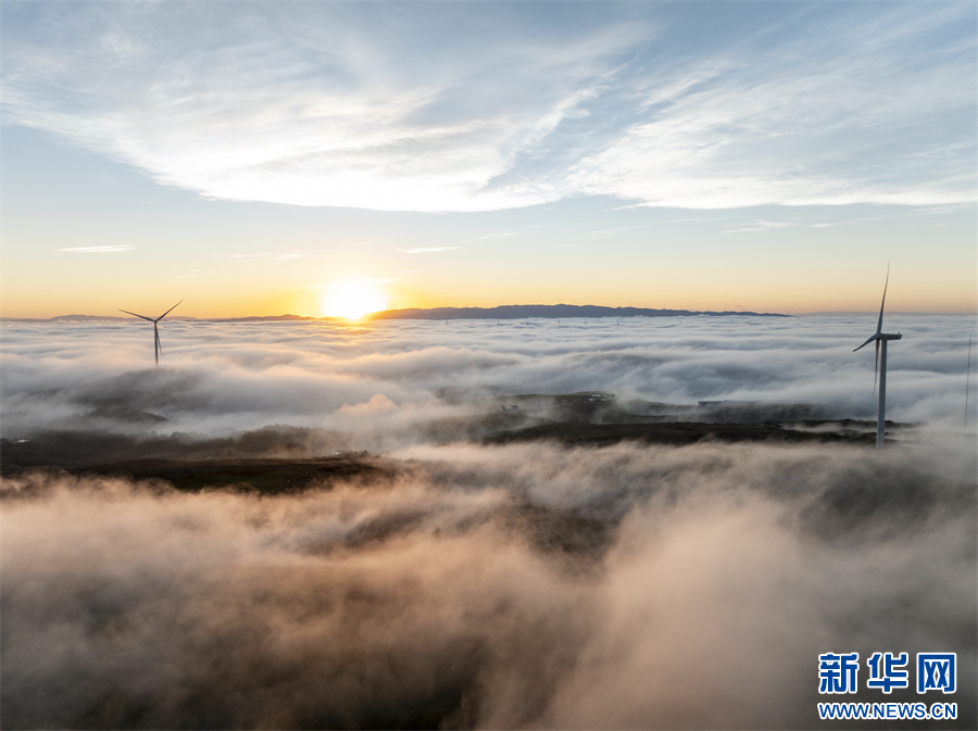 12月9日,在贵州省毕节市威宁彝族回族苗族自治县雪山镇灼甫草场,阳光照耀下的壮美雾海。新华网发(管庆巍 摄)