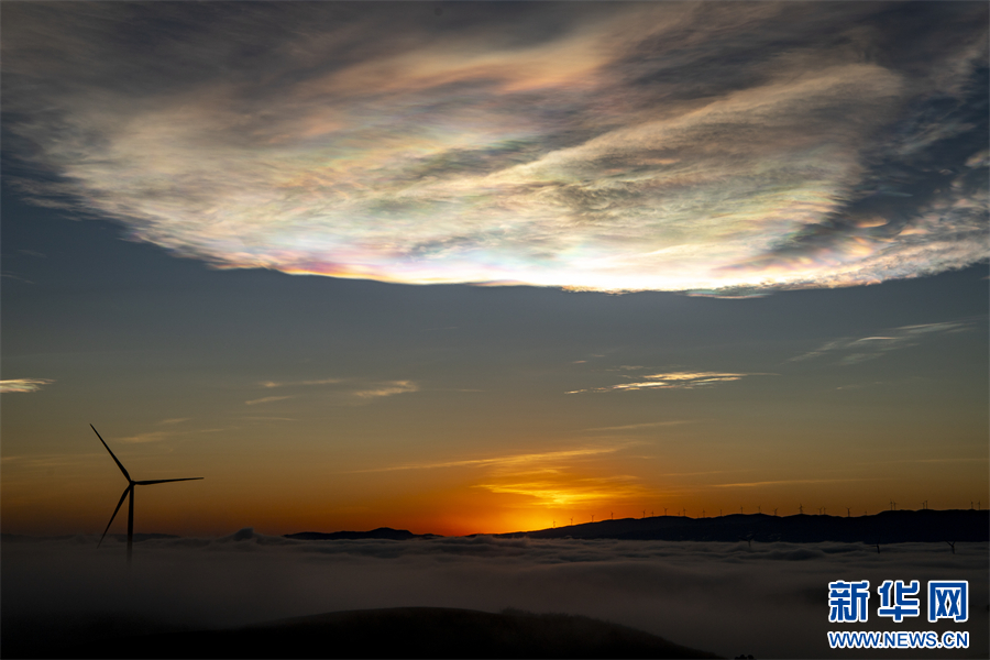 12月9日,在贵州省毕节市威宁彝族回族苗族自治县雪山镇灼甫草场,傍晚时的云雾色彩斑斓。新华网发(管庆巍 摄)