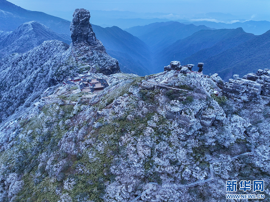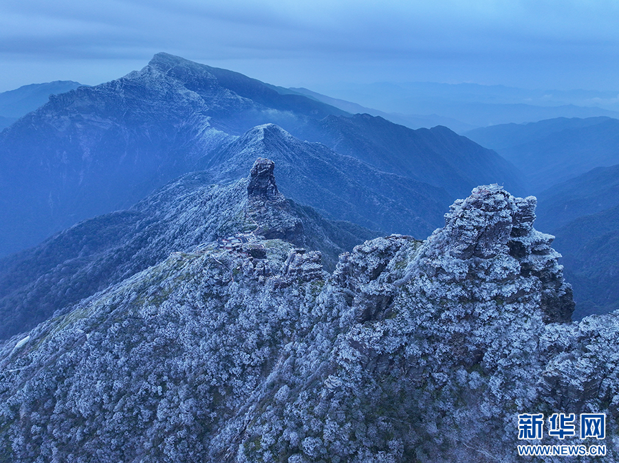12月8日,在世界自然遗产地梵净山景区拍摄的冬雪美景。新华网发(李鹤 摄)