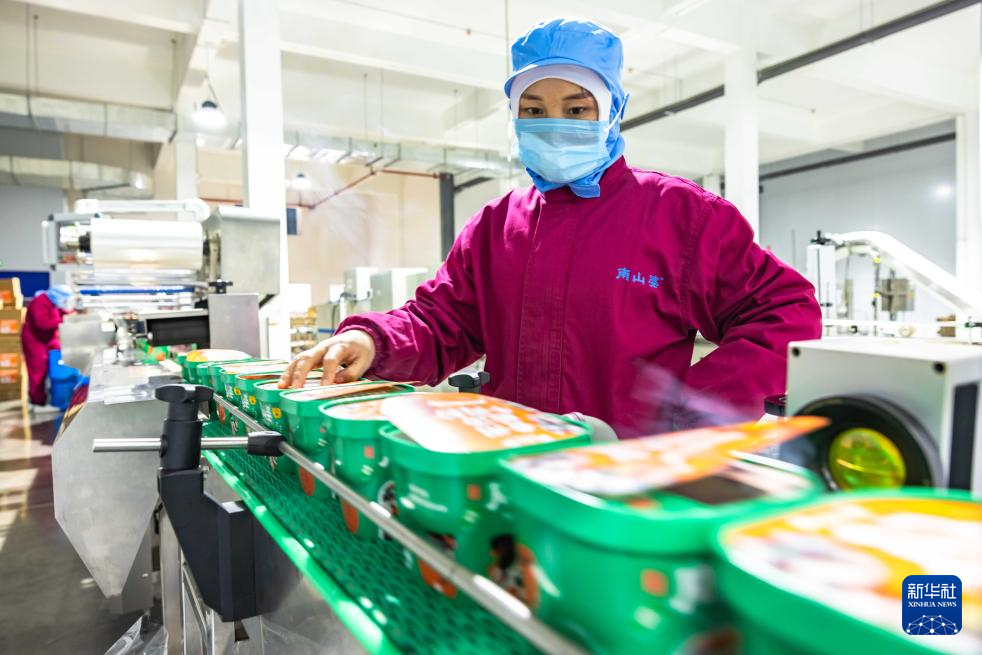 12月12日,工作人员在贵州省安顺市西秀区南山婆食品生态产业园生产酸汤火锅底料。新华社发(陈熙摄)
