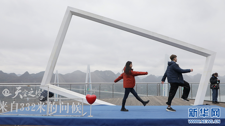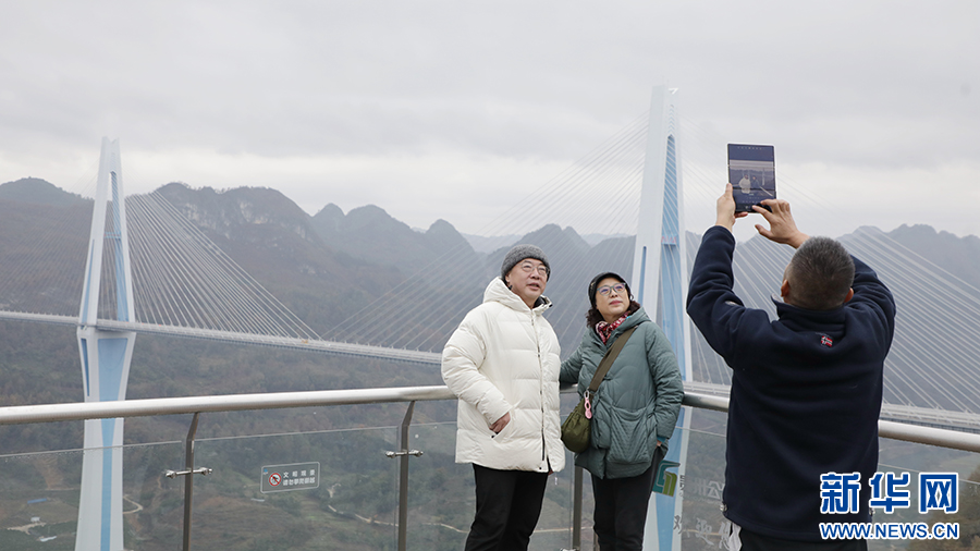12月11日,游客在平塘“天空之桥”观光服务区参观。新华网 周远钢 摄