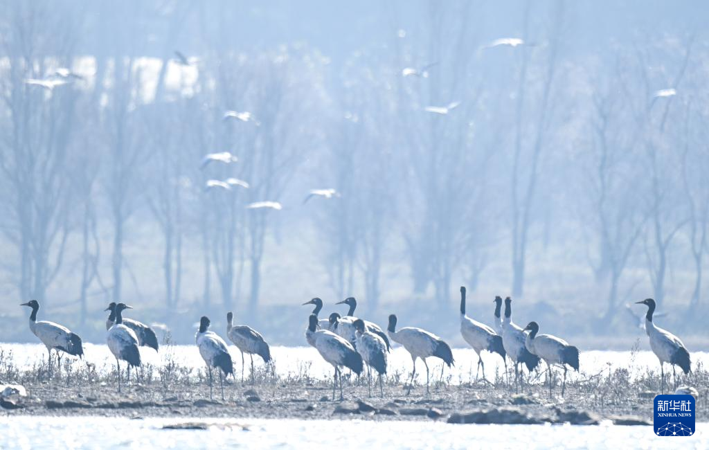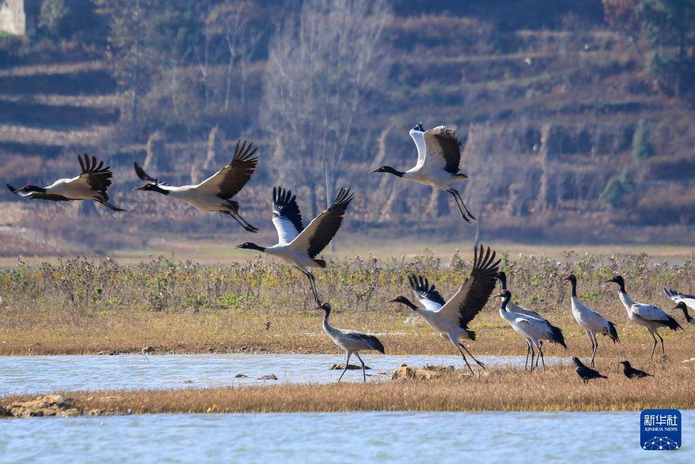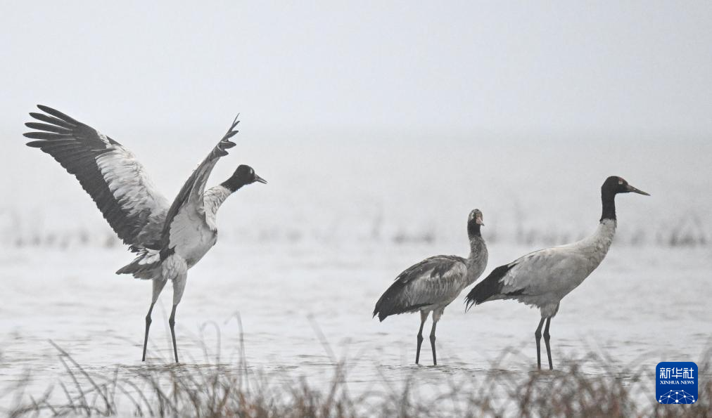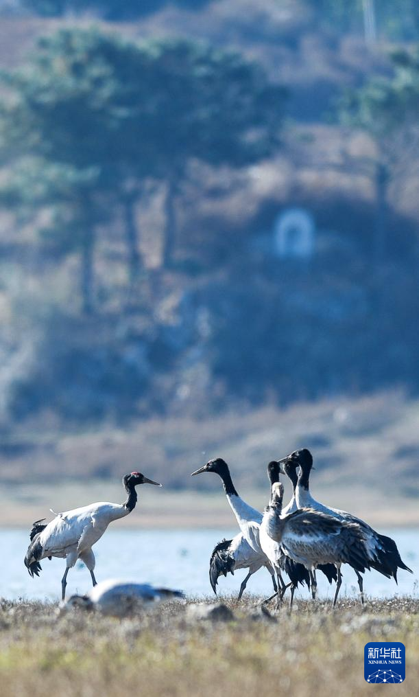 这是12月16日在贵州草海国家级自然保护区拍摄的黑颈鹤。新华社发(沈光勇摄)