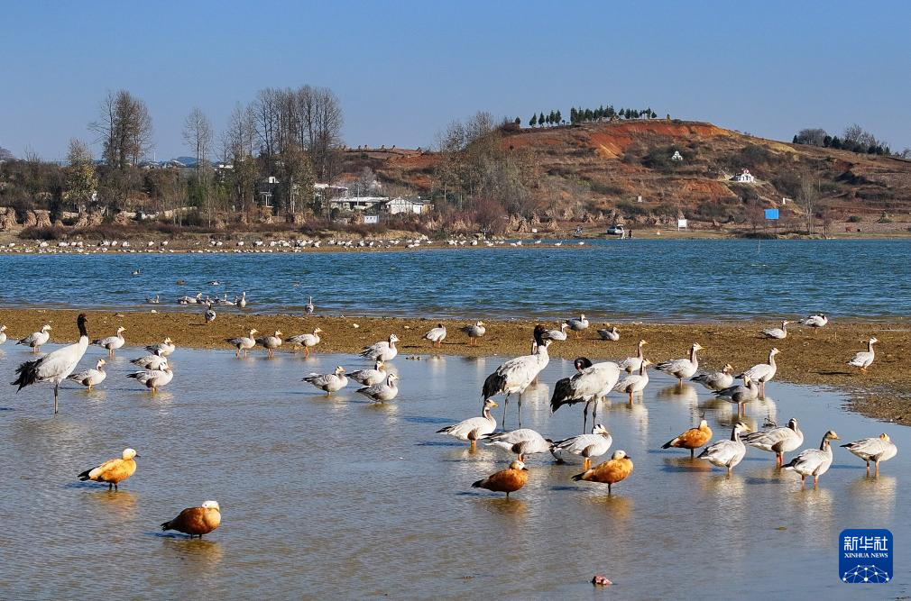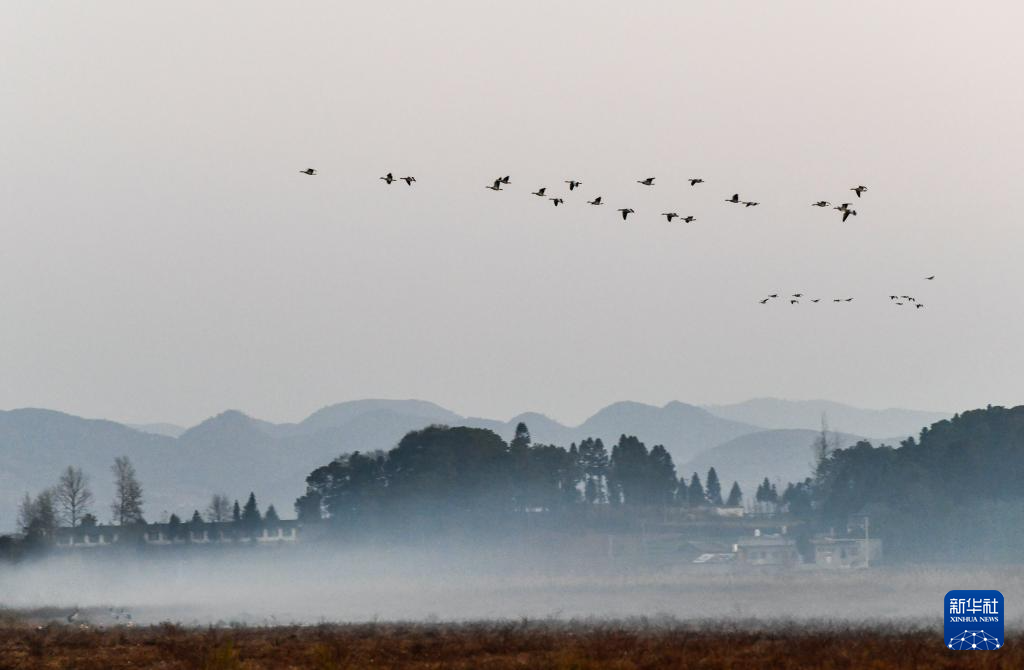 这是12月16日在贵州草海国家级自然保护区拍摄的越冬候鸟。