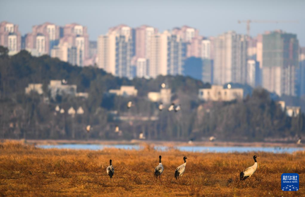 地处贵州省毕节市威宁县的草海国家级自然保护区是一个完整、典型的高原湿地生态系统,是国家一级保护动物黑颈鹤的主要越冬地之一。近年来,当地加大对草海生态系统修复力度和巡护力度,黑颈鹤数量逐年增加。