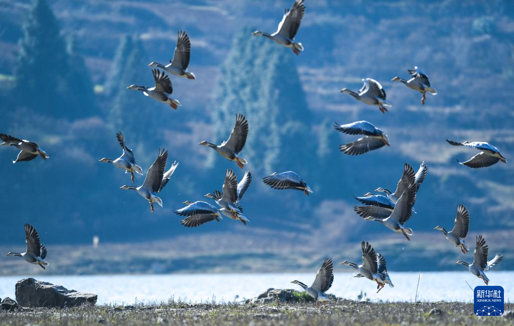 这是12月16日在贵州草海国家级自然保护区拍摄的斑头雁。新华社记者 杨文斌 摄