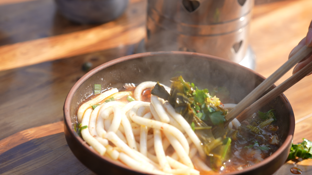 紧实鲜嫩的羊肉、浓郁不腻的羊汤,配上本地柴火糊辣椒,在冬日里吃上一碗羊肉粉既解馋又驱寒。