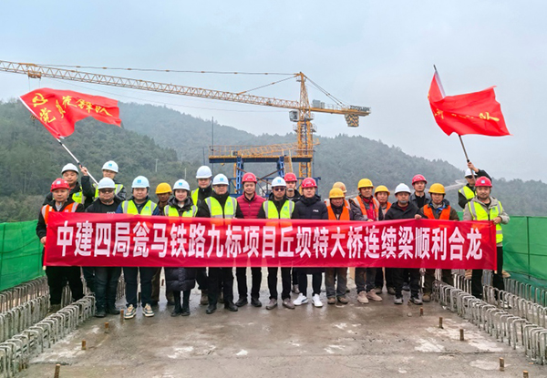 12月23日,由中建四局承建的贵州省瓮马铁路南北延伸线九标段迎来了重要工程节点,项目重难点工程之一的丘坝特大桥连续梁实现顺利合龙,为后续施工加快推进打下坚实基础。