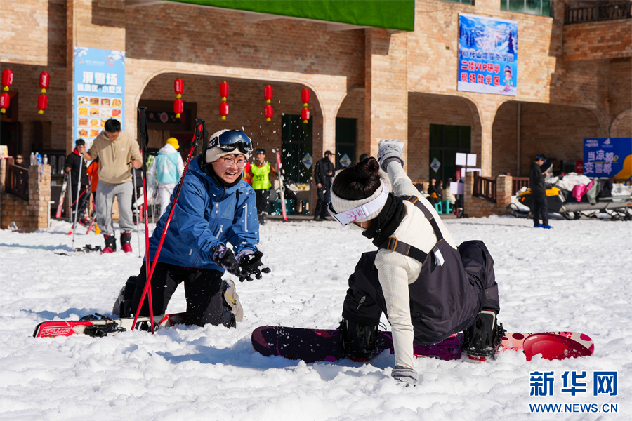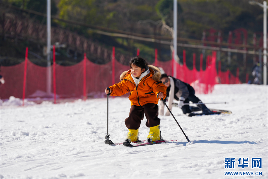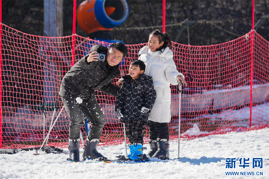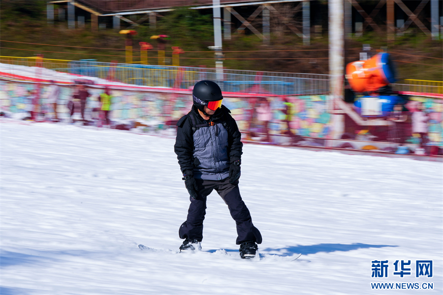 12月29日,游客在贵州省六盘水市钟山区梅花山国际滑雪场体验滑雪乐趣。新华网发(龙建睿 摄)