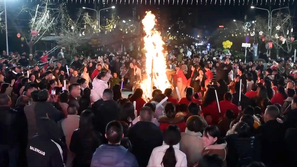 在贵州省余庆县,丰富多彩的民俗活动和烟花晚会营造出了喜庆祥和的节日氛围。钱杆舞、花灯戏、舞龙舞狮等非遗表演,鼓舞、板凳舞等花式表演精彩纷呈。