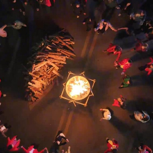 2024年12月31日,贵州省铜仁市思南县在乌江边上举办跨年音乐会。当地群众和游客围着篝火载歌载舞,在动听的音乐与歌声中尽享快乐,一起迎接2025年的到来。