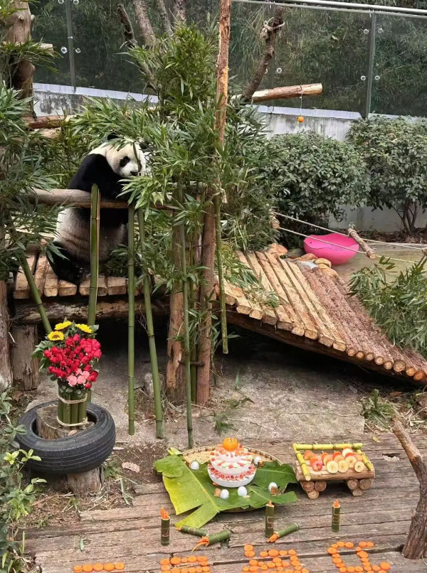 “新年新气象,来来来,我们和熊猫一起拍张照片吧!”“生日蛋糕吃起来好香哦,熊猫宝宝真幸福……”