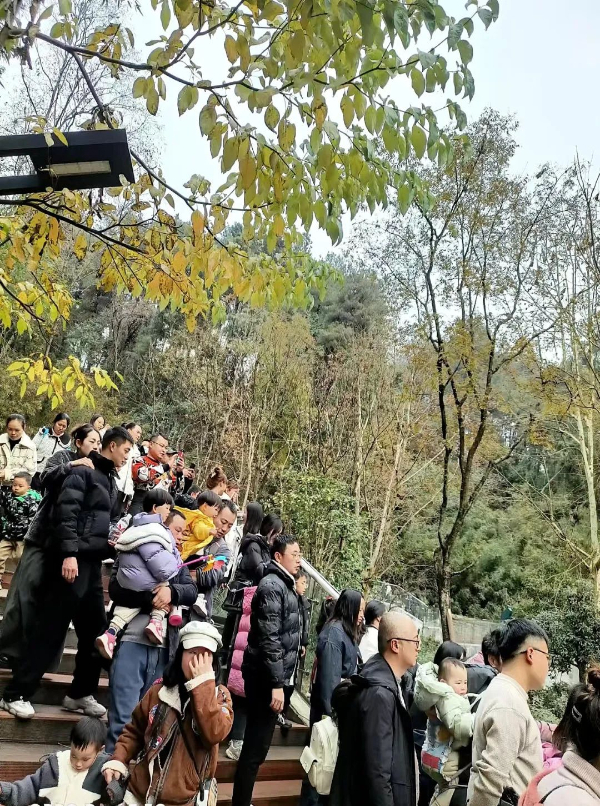 2025年第一天,黔灵山公园内的大熊猫馆人潮涌动,众多市民和游客早早等候在此,只为一睹国宝“海浜”和“星宝”的风采,与它们共同迎接新年的到来。
