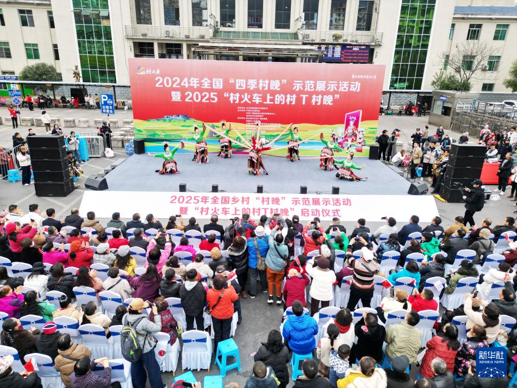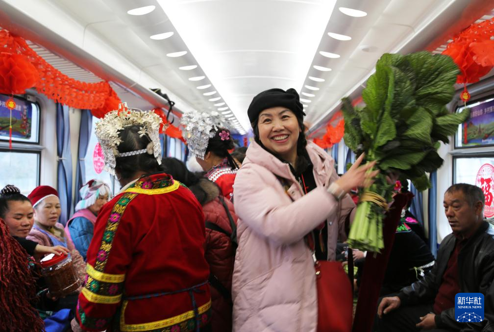 新鲜的农产品、喜庆的车厢、特色的民族歌舞、精美的非遗展示……1月18日,2025年全国乡村“村晚”示范展示活动暨“村火车上的村T村晚”启动仪式,在贵阳开往玉屏的5640次“慢火车”上举行。